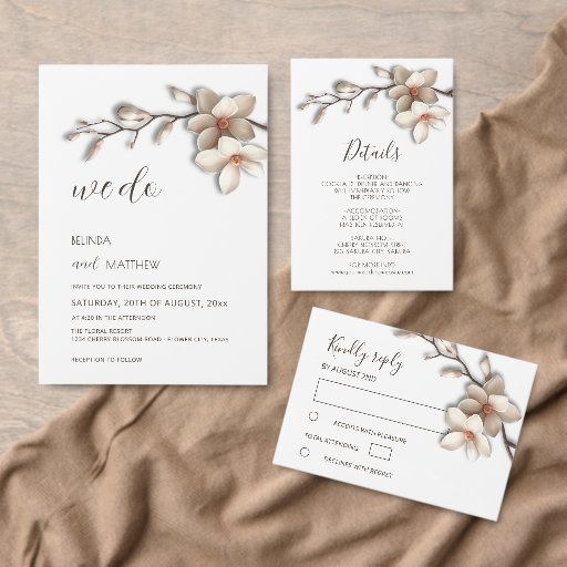Ivory, off-White 3D Magnolia flowers and an elegant handwritten script