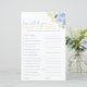 How well do you know the bride! Main Squeeze blue floral lemon citrus bridal shower games. Other games available as well as matching items such as invitation, welcome sign, tags and more!