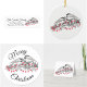 Het ontwerp bevat een originele pen-en-ink illustratie van een paar kikkervisvogels op een dennentak, omgeven door sneeuw, pinecones en een streng van rode kerstverlichting. Deze illustratie is ook beschikbaar bij het coördineren van vakantieproducten. Zie je niet wat je zoekt? Hulp nodig bij maatwerk? Neem contact op met Rebecca om iets speciaal voor jou te laten ontwerpen.