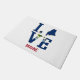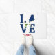 Maine staat liefde. Hoofd in helder rood in hoofdletters sans doopvont. Het woord liefde is gevuld met de staatsvlag en de letter O in liefde is gevormd in het silhouet van de staat Maine.