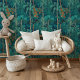 Duik in de weelderige, levendige wereld van het "Majestic Blauwgroen Forestscape" behang, waar de schoonheid van de natuur in voortreffelijk detail wordt vastgelegd. Dit boeiende ontwerp heeft een rijk tapijt van blauwgroen en diep groen gebladerte, afgewisseld met opvallende oranje bloesems en uitgewerkte palmbomen. De diepe, donkere achtergrond voegt diepte en drama toe, waardoor het levendige groen en de heldere bloemen opvallen. Dit behang brengt de serene schoonheid van een tropisch regenwoud in uw huis, het creëren van een rustige en exotische sfeer. Perfect voor woonkamers, slaapkamers of elke ruimte die behoefte heeft aan een op natuur geïnspireerde transformatie, het "Majestic Blauwgroen Forestscape"-behang is een statement stuk dat elegantie en natuurlijke pracht belichaamt.