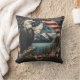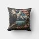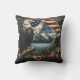 Een opvallende adelaar rust op een boomtak met uitzicht op een sereen meer met bergen op de achtergrond, versierd met een Amerikaanse vlag motief.