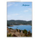 Uitzicht van blauwe lucht, oceaan en daken in de stad Majorca, Spanje. Schildereffect