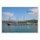 Uitzicht van blauwe lucht, oceaan en jachten, Mallorca, Spanje. Schildereffect.