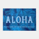 Blauwe kleurweg. De boodschap van Aloha verwelkomt uw bezoekers van uw eigen tropische paradijs. Het verspillen van palmbomen doet denken aan de tropische stranden van Hawaï. Deze textiel gebruikt die wind grote palmbladeren aanraakte in een combinatie van tonale kleuren. Dit ontwerp komt op verscheidene kleurenmanieren. U kunt het bericht aanpassen.