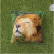 Mannelijke Lion Basking in de Sun Big Cat Outdoor Pillow. Een majestueuze geverfde mannelijke leeuw die de warme zon opstak.