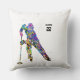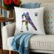 Decorative throw pillow featuring a colorful watercolor silhouette of a male ringette player. A dynamic and artistic piece that brings color and energy to any room.