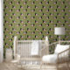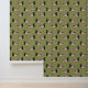Deze peel en stick behang heeft een klassieke uitstraling. Het beschikt over realistische stijlillustraties van wilde eenden tegen een olijfgroene achtergrond met een eenvoudig streepjespatroon.