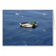 Het heldere groen van de kop van deze mallard schijnt in het licht van boven.