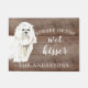 Grappig pas op voor de natte kusser" Maltese hondendeurmat gezet op een rustieke faux achtergrond. Bezoek onze winkel om een groot assortiment hondenbroden te uitzichten