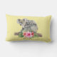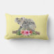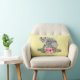 Een kussen met een schattige waterverf. Koala beer moeder en baby. Baby rijdt op momma's rug. Op een boomvertakking staan. Een hibiscus-bloemenboeket eronder. Gele bananenachtergrond.