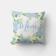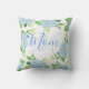 Dit mama kussen heeft een bloemenbloemenbloemenontwerp met hortensia waterverven en groen bladblad.