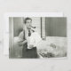 Man doing washing dishes in kitchen, pipe in teeth (B&W) | George Marks AssetID: 57539450