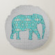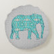 Mandala flower elephant - turquoise, grijs & wit rond kussen
