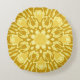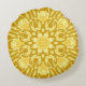 Ronde kussen in een , geometrisch bloempatroon in tinten diep mosterdgoud met diep en pastelgeel
