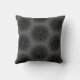 Sierkussen met zwarte mandala grafische illustratie op donkergrijze achtergrond.