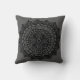Sierkussen met zwarte mandala grafische illustratie op donkergrijze achtergrond.