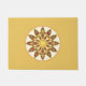 Doormat in een 12-punts mandala patroon in tinten chocoladebruin, mosterdgoud en donkerbruin op wit, met een gouden achtergrond