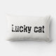 Rechthoekige kussens met maneki neko's met verschillende kleuren op een witte achtergrond en Lucky cat op de achterzijde