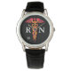 Male Registered Nurse Kleurrijke Caduceus Symbol Watch heeft een helder oranje en roodachtige caduceus medisch symboolontwerp op horlogegezicht met RN en monogram drie letter initialen in witte letters. Zwarte achtergrond op het gezicht en aanpasbare zwarte band. Ook verkrijgbaar in vrouwen en meerdere kleuren en stijlen. KLIK OP SJABLOON PERSONALISEREN EN VOER INITIALEN VOOR MONOGRAMMEN IN.