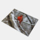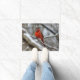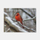 Een heldere rode kardinaal voegt een pop kleur toe op een droeve sneeuwdag.