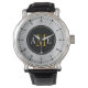 Mannen Classy Monogram Horloge met Romeinse cijfers. Voeg je eerste, middelste en laatste initialen toe. Zwart-wit en zeer stijlvol. Geel middenmonogram.