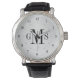 Elegante en stijlvolle, strakke en eenvoudige op maat gemaakte monogrammed horloges voor het speciale man op uw cadeaulijst. Klassiek makkelijk te lezen nummers met grijze hashmarks op zilver metallic gezicht. Vet en geavanceerd monogram initialen voor heren met een traditionele stijl — klik op Aanpassen om de lettergrootte, stijl of kleuren te wijzigen. Novelty monogram horloges maken een perfect gepersonaliseerd cadeau voor verjaardagen, jubileum, afstuderen, pensioen, bruiloftsfeestgangers, feestdagen en andere mijlpaalvieringen.