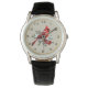 Mannen rood kardinaal horloge, grijze achtergrond met gouden trim. Veel verschillende horlogekleuren en -stijlen om uit te kiezen.