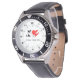 Mannen roestvrij staal zwart lederen band horloge I hart