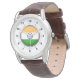 Mannen Classic Bruin Leather Strap Watch India Vlag