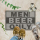 Duidelijke boodschap, stijlvol verpakt! Dit ontwerp is perfect voor iedereen die van bier houdt en graag met een knipoog zijn boodschap wil overbrengen. Met zijn afwisselende strepen in zwart-wit en opvallende typografie is deze deurmat of dit bord een echte blikvanger. De tekst is aanpasbaar - of u nu gasten met humor wilt begroeten of uw hobby wilt delen. Het klassieke ontwerp past naadloos in elk entreegebied en is een echt gesprekspunt. Het is ook ideaal als cadeau voor bierliefhebbers, mannen die hun eigen 'man grot' of bar willen versieren, of vrienden die van stijlvolle en humoristische berichten houden.