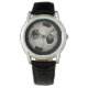 PAS JE EIGEN SPORTHORLOGE AAN ZOALS JE WILT! "Game ON" in grunge stijl grijs lettertype gecentreerd over ruig voetbal op vet zwart gezicht. Zwarte leren polsband. VERKRIJGBAAR IN VERSCHILLENDE STIJLEN EN KLEUREN