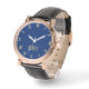 Creëer uw eigen aangepaste, gepersonaliseerde, elegante faux gold monogrammed op donkermarineblauwe wijzerplaat, stijlvolle coole unieke stijlvolle mannen rozen gouden retro vintage klassieke look stijl zwart leren bandhorloge. Typ gewoon jouw naam / monogram / initialen in om aan te passen. Maakt een geweldig cadeau, voor verjaardag, afstuderen, vaderdag, kerst, feestdagen, bruiloft, huwelijksverjaardag, Valentijnsdag en meer, voor uw dierbaren, broer, zoon, vader, man, vriend, bruidegom, bruidegom, beste man, opa, familie en vrienden.