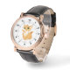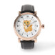 Mannen Roos Gold horloge met zwart lederen band Schattige Cat