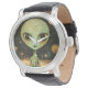 Mannen horloge met een UFO buitenaards horloge gezicht.