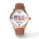 Een Amerikaanse gesegmenteerde vlag, zwarte primaire nummers en naam zijn te zien op deze Mannen horloge met een bruine leren gesp riem. Voeg eenvoudig een naam toe, wijzig deze in initialen of verwijder deze met behulp van de meegeleverde Sjabloon. Zie "Over dit product" aan de zijkant voor gedetailleerde specificaties over maten, materialen, sluitingstype, garantie. Veel meer stijlen beschikbaar. Het printen op deze horloges is uitstekend.