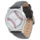 Gepersonaliseerde honkbal horloge cadeau. Personaliseer het met de naam van de ontvanger of pas het verder aan als u het lettertype, de grootte en de kleur van de tekst wilt wijzigen en de tekst wilt verplaatsen. Of verwijder de tekst als je hem liever zonder hebt.