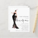Glam Lady Trendy Script 21st Birthday Party. Een budgetprijs voor KLEINE 4,5 x 5,6 inch. Verkrijgbaar in een SEMI GLOSS 110 lb KAART STOCK dat de standaardoptie is (aanbevolen voor uitnodigingen, vergelijkbaar met de dikte van een briefkaart) OF een SATIN FINISH 80 lb THINER PAPER STOCK (ideaal voor behuizingen). Een illustratie van een glamoureuze dame in zwart en 20 is in een funky set handschrift stijl script. Pas de rest van de tekst eenvoudig aan uw eigen details aan.