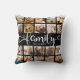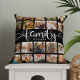 De moderne kussen van de douanefoto collage met ruimte voor 20 foto's die een trendy schemerige manuscriptlezing FAMILIE en uw douanenaam hieronder omringen. Dit is de tweezijdige versie.