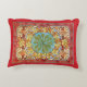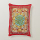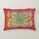 Een accentkussen met een abstract motief van de Tsjechische kunstenares Alphonse Mucha (1860-1939) uit de Art Nouveau-periode, met diverse gekleurde bladeren in herfstkleuren van rood en sinaasappel.
