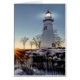 Een prachtige winterzonsopgang van de historische Marblehead Lighthouse op het meer van Erie in Northwest Ohio.