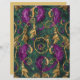 Dit plakboekpapier met Mardi Gras-thema heeft een weelderig en levendig ontwerp dat de essentie van de feestelijke viering vastlegt. De voorkant van het papier is versierd met een ingewikkeld patroon van wervelende gouden kralen, gouden bladeren en rijke paarse veren tegen een diepgroene achtergrond. Het ontwerp wordt verder verbeterd met kleine paarse en gouden accenten, waardoor een luxe en feestelijk gevoel ontstaat. Dit papier is perfect voor iedereen die op zoek is naar een vleugje elegantie en feestelijkheid toe te voegen aan hun scrapbooking projecten, partij uitnodigingen, of decoratieve ambachten. De achterkant van het papier is een effen gouden kleur, die een complementaire achtergrond biedt die het weelderige ontwerp aan de voorkant verbetert. Dit dubbelzijdige papier biedt veelzijdigheid en een vleugje sophisticatie, waardoor het ideaal is voor een verscheidenheid aan creatieve toepassingen.