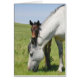 Foto van een grijze mare grazing met een baaikolte die naast haar staat en in haar nek nestelde.