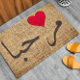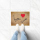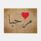 Bold text " Marhaba" in Arabic = Welcome, Hello - rustic burlap look background , dark brown funts , red heart. Great doormat for Arabic banden/studententjes who study the language or for anybody else who likes Middle Eastern flair .