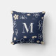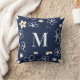 Een marineblauwe achtergrond met een retro stijl bloemenpatroon in wit en crème. Personaliseer en voeg uw monogram letter, initiaal.