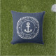 Voeg een coole aanraking aan uw vissersboot, zeilboot, jacht of woonboot toe met deze gepersonaliseerde kussens. Klassiek nautisch ontwerp in blauw en wit marineschip bevat de naam van uw vaartuig en het scheepsregister dat in een touw-logo badge met een ankerafbeelding in het midden gebogen is.