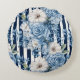 Marine Blauw Rode Bloemen Strepen Rond Kussen