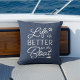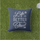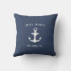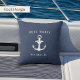 Een perfecte aanvulling op uw boot decor, onze kust werpen kussen is voorzien van een klassieke marine blauwe achtergrond met "het leven is beter op de boot" in witte letters, geaccentueerd met scheepswiel en roeischermen. Personaliseer de achterkant met uw bootnaam en scheepsregister met een nautisch anker in het midden.