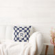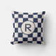 Marine en Crème Geruit Patroon Custom Monogram Kussen