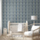 Marine en White Jet Pattern op subtiel gestreept g Behang